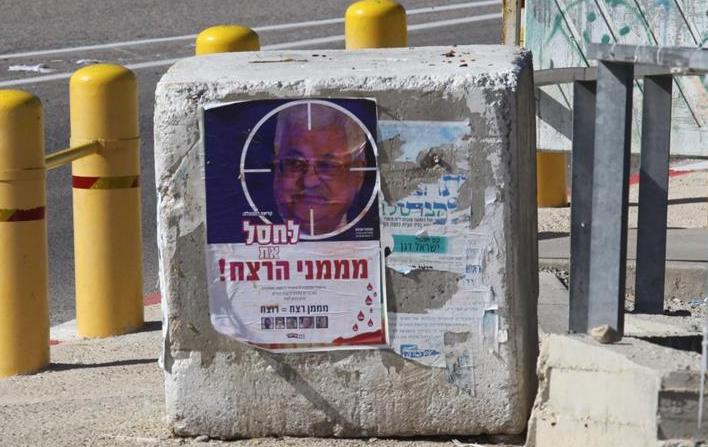 I coloni ebrei appendono manifesti con minacce per il presidente palestinese Mahmoud Abbas